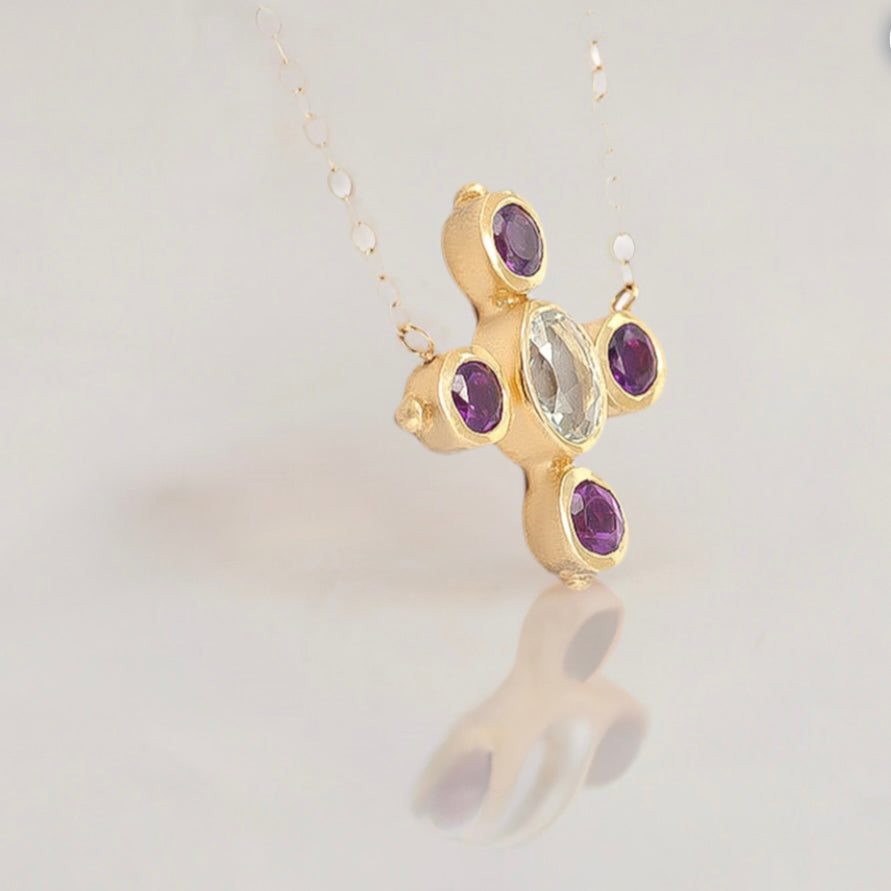 Elevate your style with this exquisite Amethyst Aquamarine necklace. Crafted with stunning gemstones and an a elegant design.