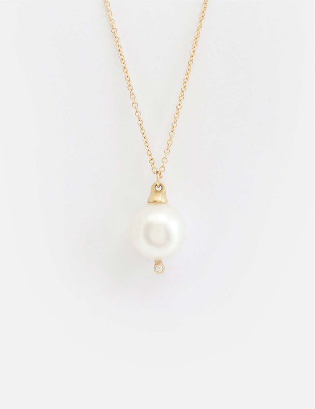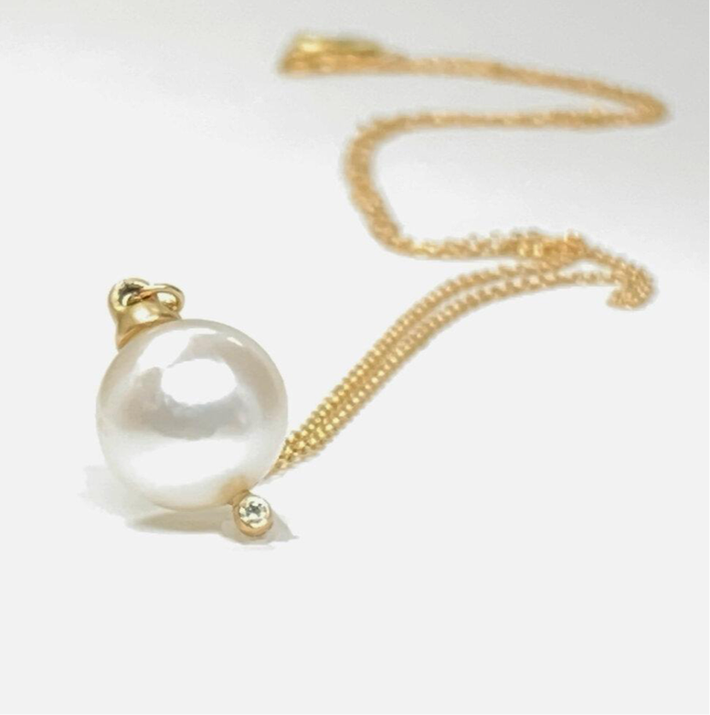A classic single Japanese pearl necklace with a diamond to give it that extra sparkle.